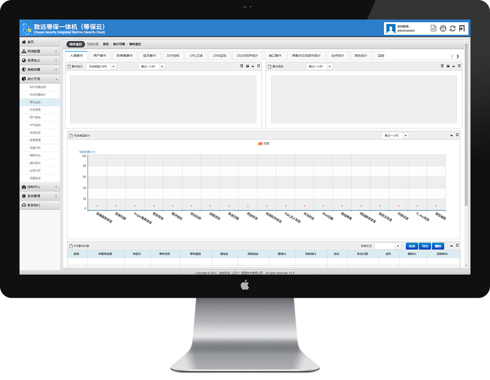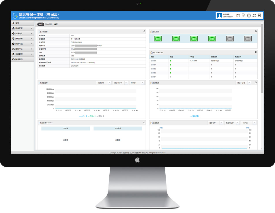 致遠等保一體機是面向等級保護合規場景研發的一體化綜合防護產品。產品不僅具有網元豐富、便捷部署、統一交付、靈活拓展等特點,還能夠幫助客戶實現全網統一管控、威脅可視,有效應對網絡環境中的多種安全威脅。產品能夠快速滿足合規要求,為客戶按需提供安全能力,全面提升安全防護水平。
