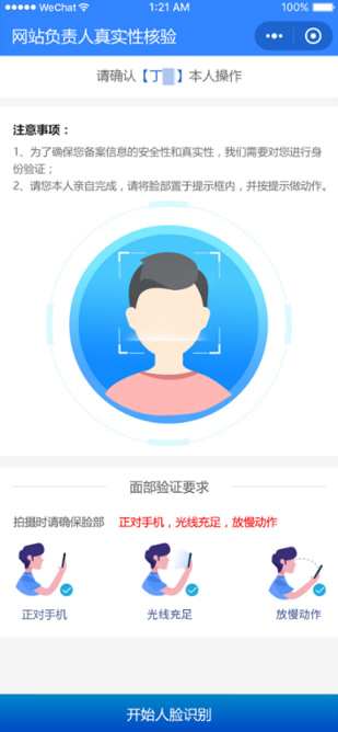 一般為對(duì)網(wǎng)站負(fù)責(zé)人進(jìn)行“人臉識(shí)別”、“唇語(yǔ)識(shí)別”、“動(dòng)作識(shí)別”等技術(shù)手段采樣,電子化核驗(yàn)系統(tǒng)將與權(quán)威庫(kù)進(jìn)行信息比對(duì)及核驗(yàn),檢驗(yàn)網(wǎng)站負(fù)責(zé)人的真實(shí)性。 |