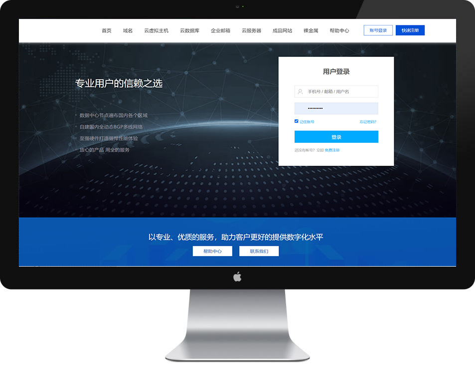 IDC業(yè)務(wù)電商前臺(tái):提供了豐富的IDC產(chǎn)品類目展示、用戶可自行注冊(cè),下單購(gòu)買、開通域名、云主機(jī)、數(shù)據(jù)庫(kù)等各類IDC產(chǎn)品;